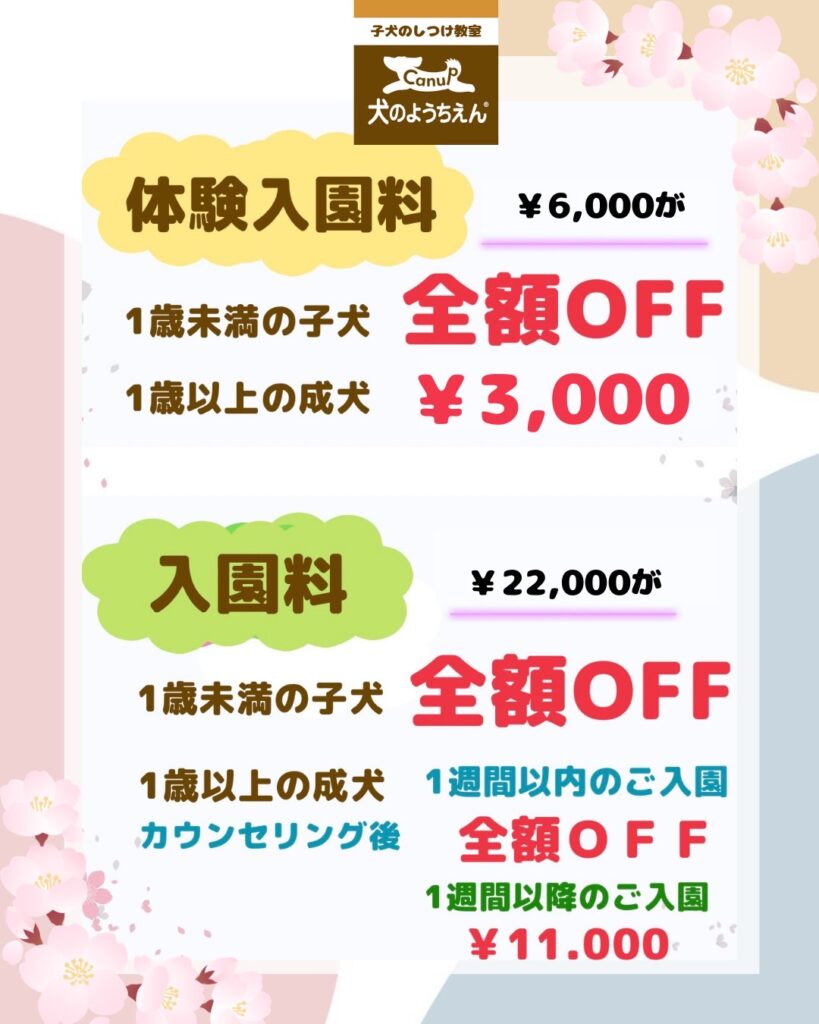 🌸 2026年 春のキャンペーンのお知らせ 🌸キャナップ犬のようちえん堀江教室・高槻教室